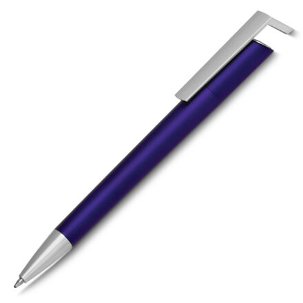 Caneta esferográfica retrátil escrita em azul embalada em saco plástico individualmente.