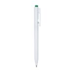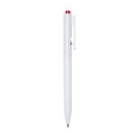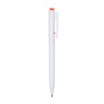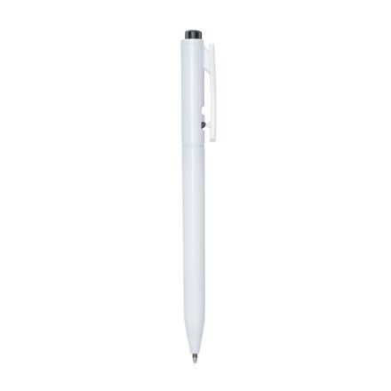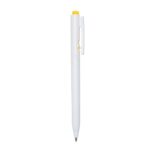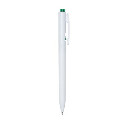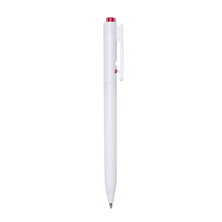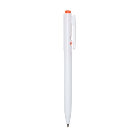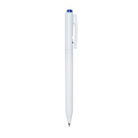 Caneta plástica com detalhe colorido e relevo no acionador. Aciona por clique e para destravar basta apertar a parte inferior do clipe.