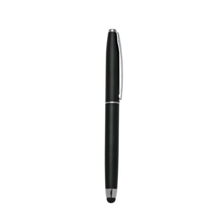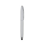 Caneta plástica touch inteira colorida, possui detalhes em prata e clipe de metal.