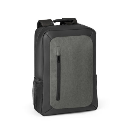 Mochila em 600D de alta densidade e poliéster 600D impermeável. O compartimento principal é almofadado para notebook até 15.6”, possui bolso frontal com zíper e dois bolsos laterais em tela. Parte posterior almofadada, sistema de apoio acolchoado para as costas e alças almofadadas.